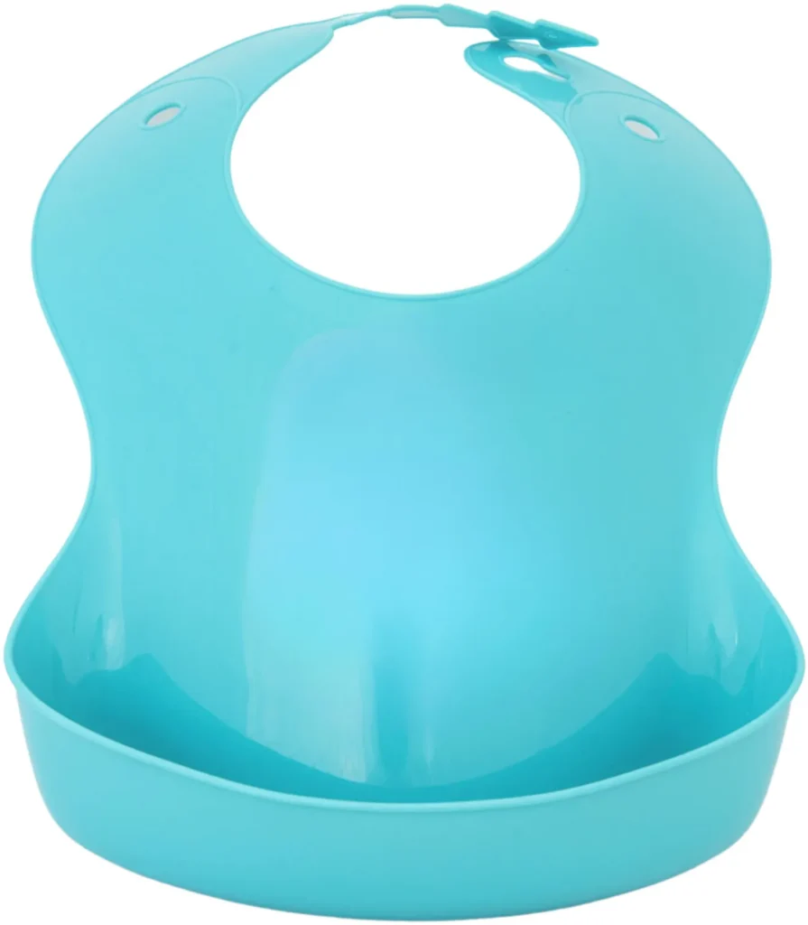 Haklapp som är behaglig för barnets hals och har en djup ficka som fångar upp mat som hamnar utanför munnen.