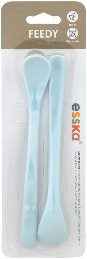 ESSKAs praktiska matningsked Feedy har extra långt ”handtag” och lätt utstansatt grepp. Det gör det enkelt att nå all mat i barnmatsburken och smidigt att mata ditt barn. Skedens grunda form gör det lättare för barnet att få i sig maten. Kan maskindiskas.