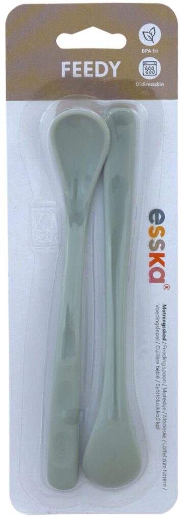 ESSKAs praktiska matningsked Feedy har extra långt ”handtag” och lätt utstansatt grepp. Det gör det enkelt att nå all mat i barnmatsburken och smidigt att mata ditt barn. Skedens grunda form gör det lättare för barnet att få i sig maten. Kan maskindiskas.