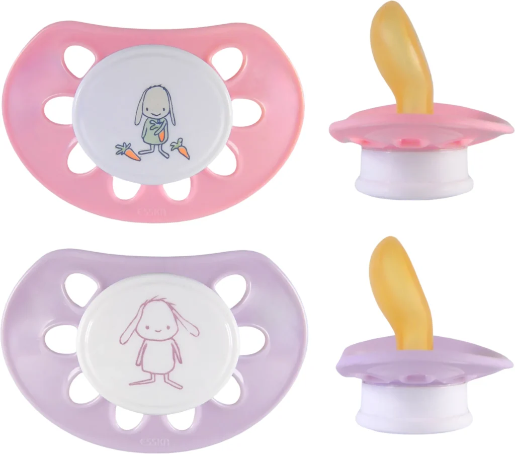 • Bli inte orolig om nappen fastnar i bebisens mun. Esska-nappar är konstruerade med andningshål för att klara detta och kan inte sväljas. Ta försiktigt ut nappen ur munnen.