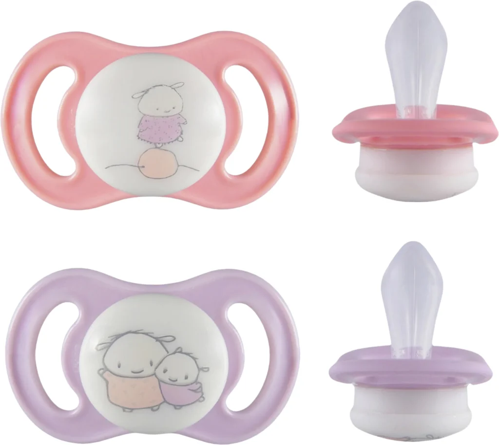 Tack vare symmetriskt formad sugdel är Happy Mini Glow alltid rättvänd i barnets mun.