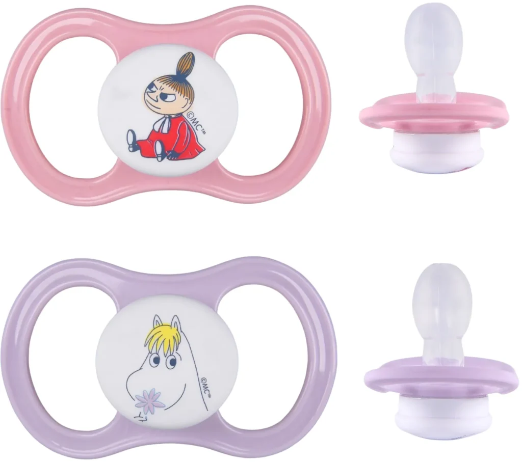 Tack vare symmetriskt formad sugdel är Happy Mumin alltid rättvänd i barnets mun.