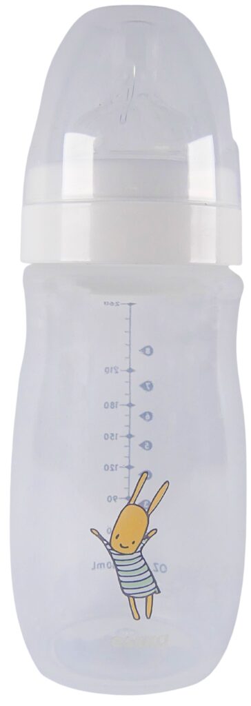 Nappflaska med wide-neck som tål att kokas i vatten och värmas i mikrovågsugn.