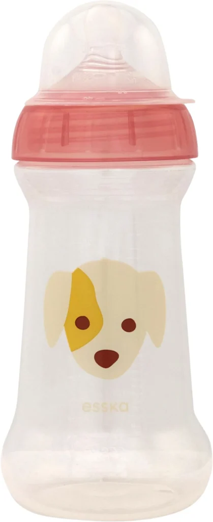 Esprit nappflaskas ergonomiska form gör den lätt att hålla i för både barn och vuxen. Flaska och lock har tydlig gradering som underlättar att mäta upp rätt mängd. Det läckagesäkra locket kan användas som måttskopa. Nappflaskan har en bred öppning och innehåller inte fler delar än en traditionell nappflaska, vilket gör den lätt att fylla och rengöra. Kan kokas, värmas i mikro och diskas i diskmaskin. Dinapp storlek M ingår.