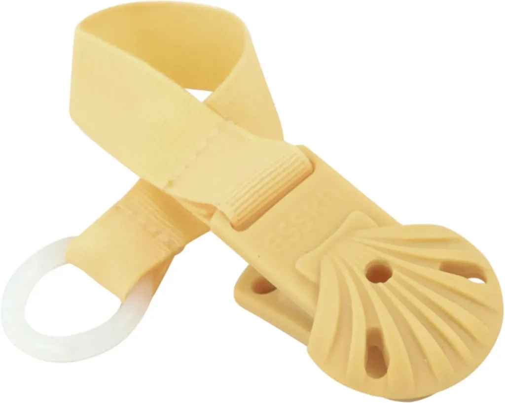 ESSKA Click napphållare är en enkel och prisvärd hjälpreda i vardagen med små barn. Napphållaren håller reda på barnets napp så den inte kommer bort eller tappas på marken och blir smutsig. Click napphållare är praktisk med snäckformat spänne och mjukt band som enkelt fästs i barnets kläder. Click napphållare passar till alla ESSKAs nappar och till de flesta andra nappar på marknaden.