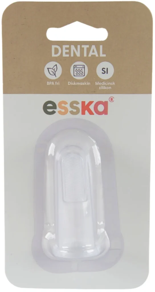 ESSKA Dental fingertandborste är ett bra hjälpmedel för att skapa goda tandhygienvanor. Det är bra att tidigt vänja det lilla barnet vid “tandborstning” och t.ex. vid klädan när de första tänderna bryter fram kan det vara skönt för barnet att massera tandköttet.